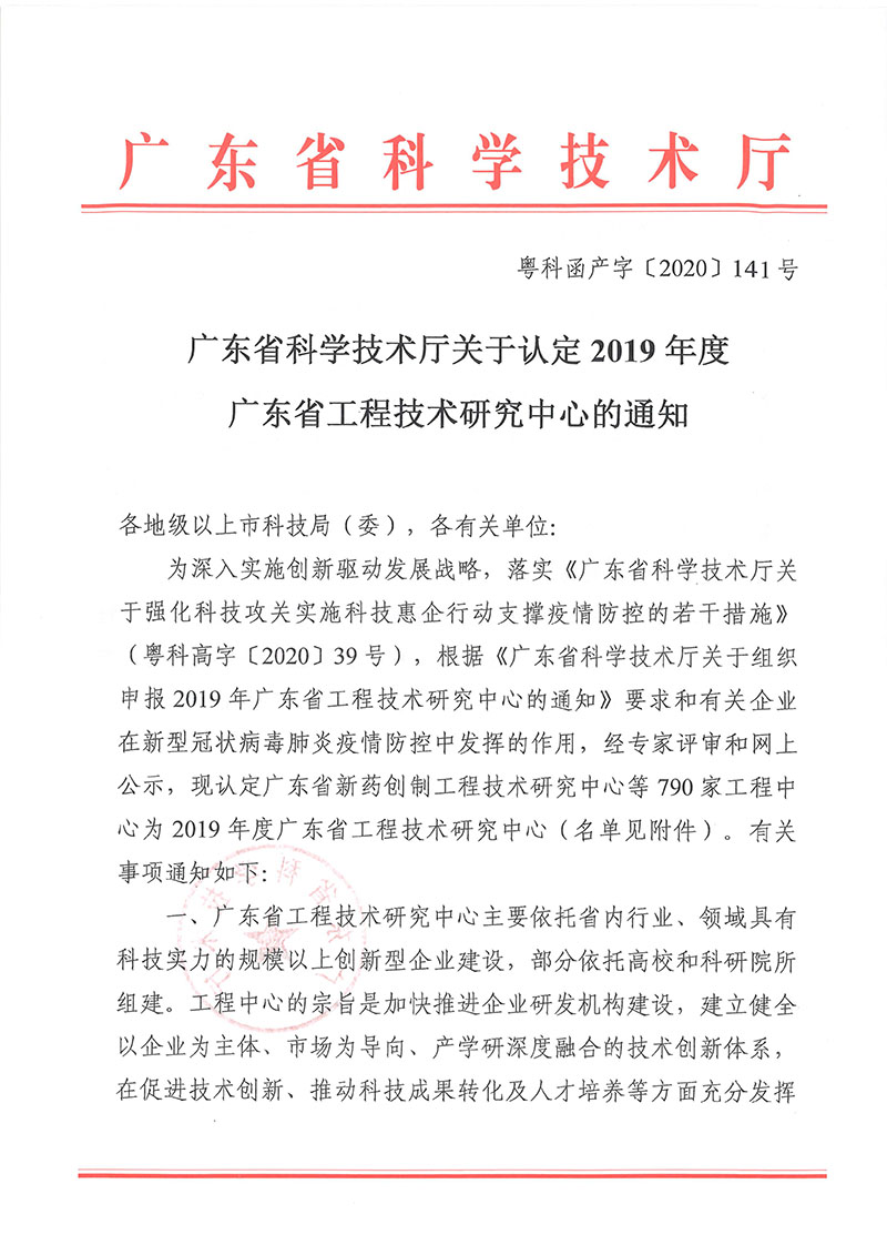 于2019年認(rèn)定為廣東省工程技術(shù)研究中心